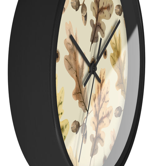 Oak Leaves Wall Clock - Select from Black, White or Natural Wood Color