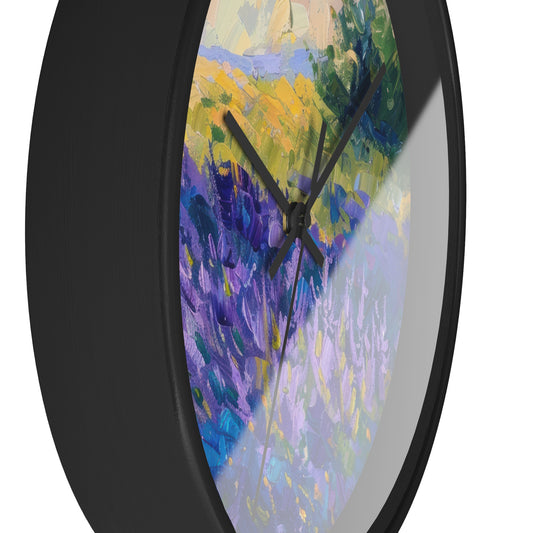 Lavender Fields Wall Clock - Select from Black, White or Natural Wood Color