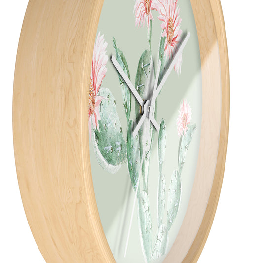 Cactus Flower Wall Clock - Select from Black, White or Natural Wood Color