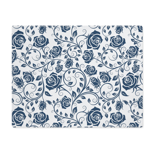 Blue Roses Placemat - 18" × 14" Cotton Twill - Holiday Dinner Placemat - Blue & White Placemat, Blue Table Decor, Party Placemat - Price for 1 Placemat