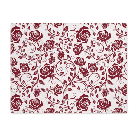 Burgundy Roses Placemat - 18" × 14" Cotton Twill - Holiday / Christmas Placemat - Burgundy & White Placemat, Christmas Table Decor, Holiday Dining Placemat - Price for 1 Placemat