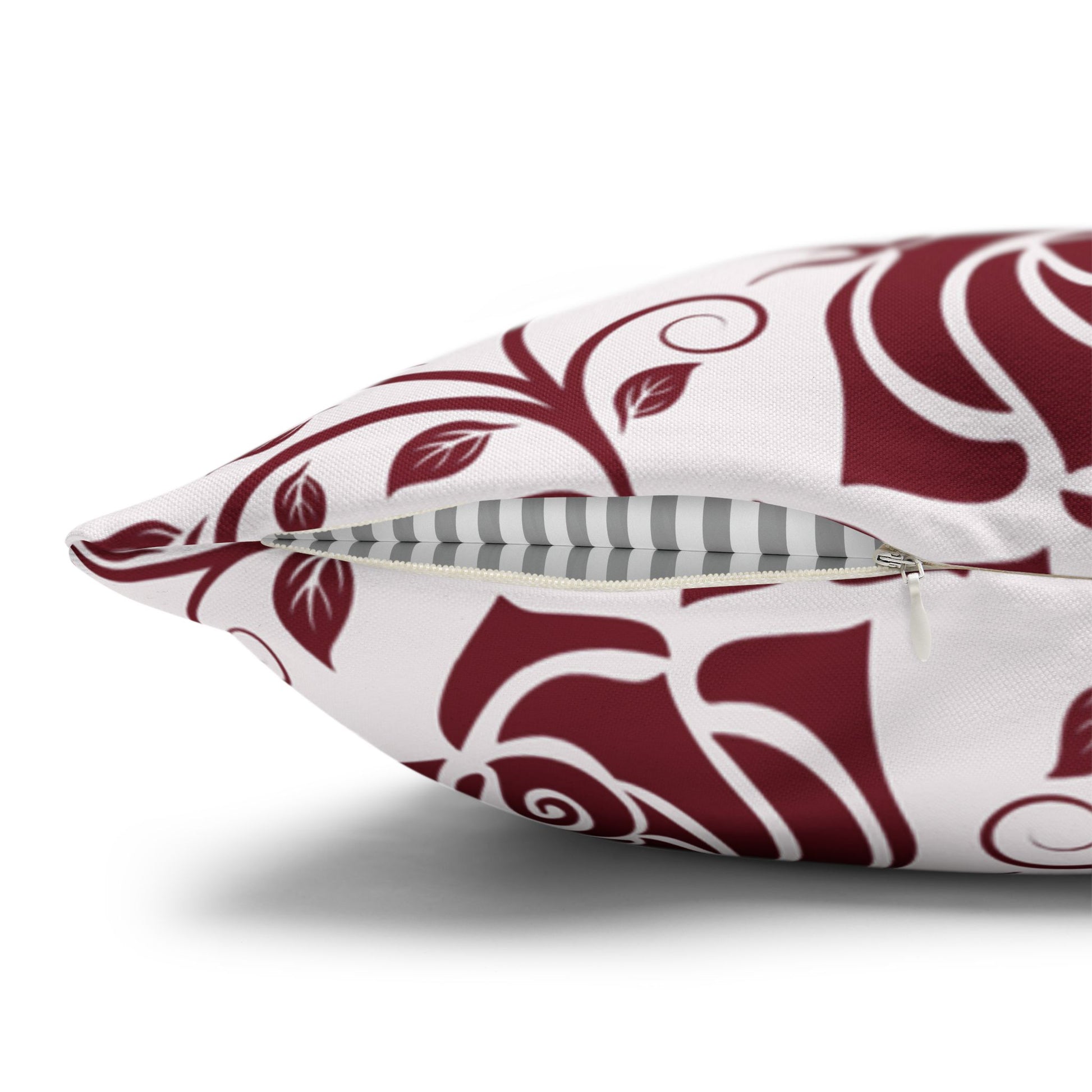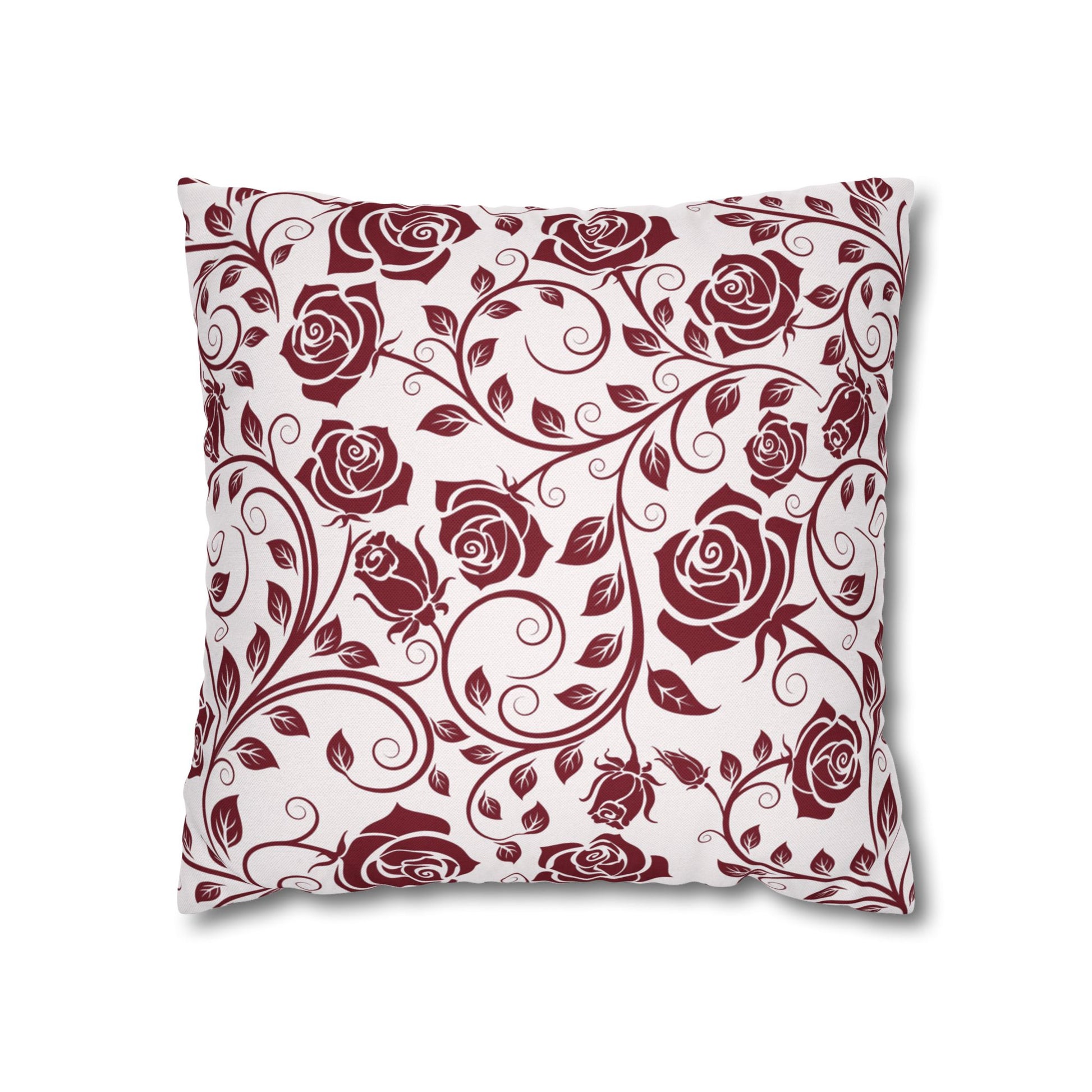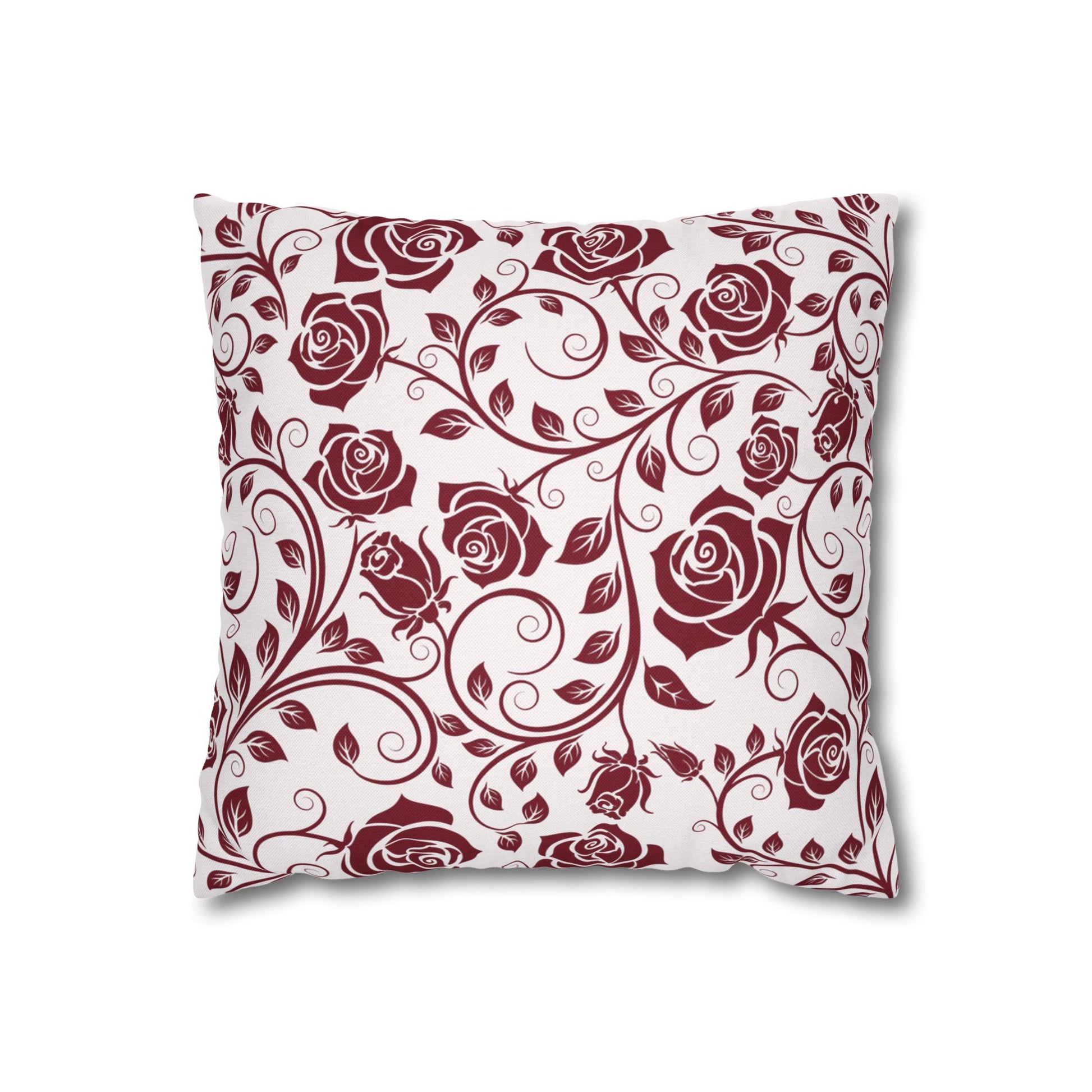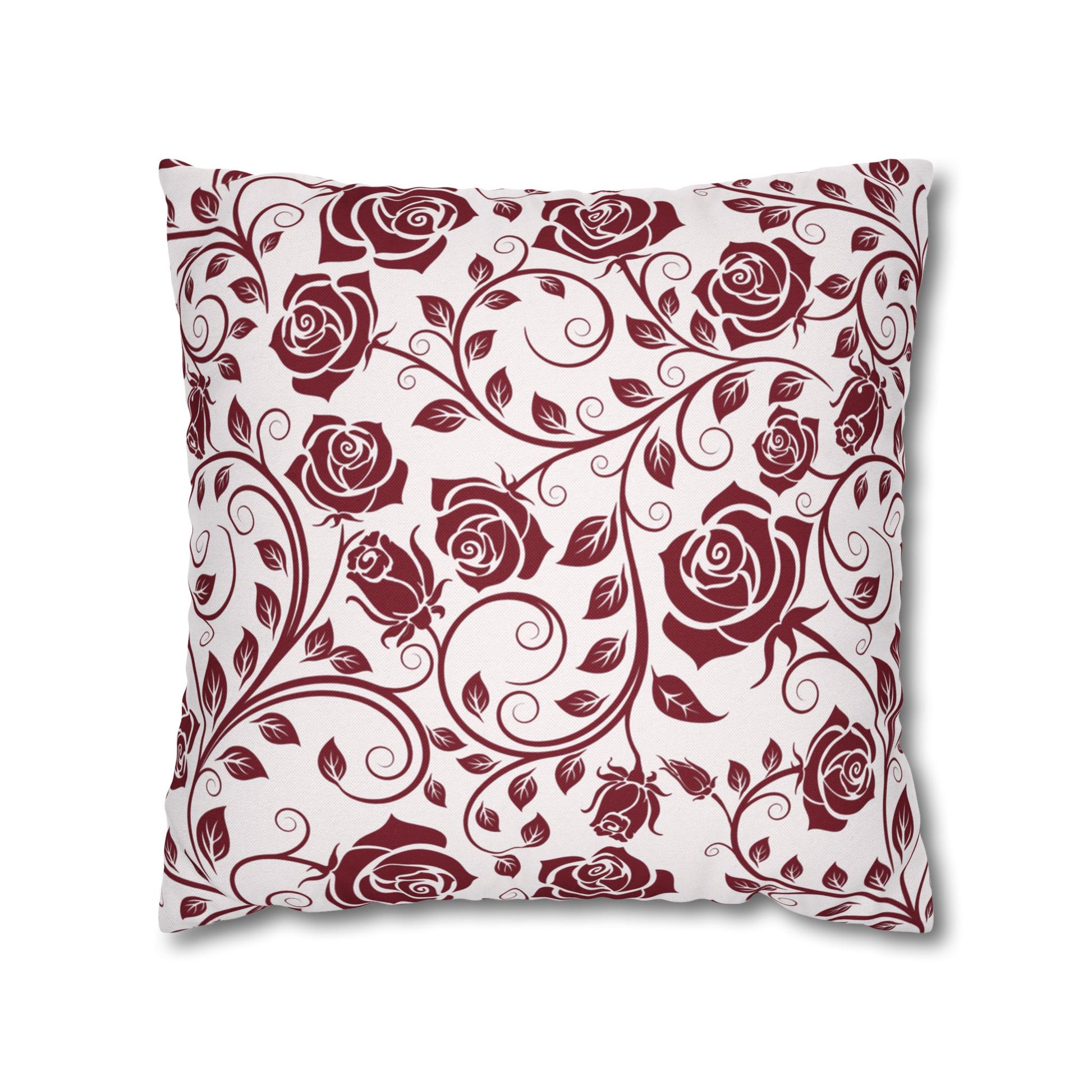 Burgundy Roses Printed Square Pillow Cover (no insert) - Multiple Sizes (14"x14", 16"x16", 18"x18", 20"x20"), Includes zipper closure, Burgundy Red Decorative Throw Pillowcase