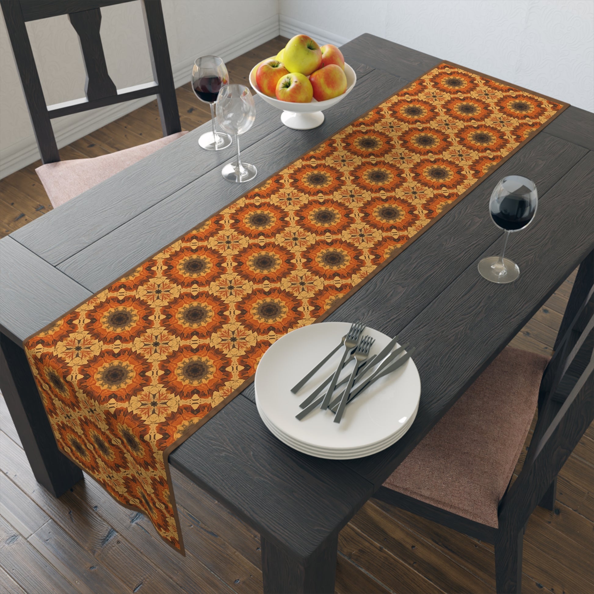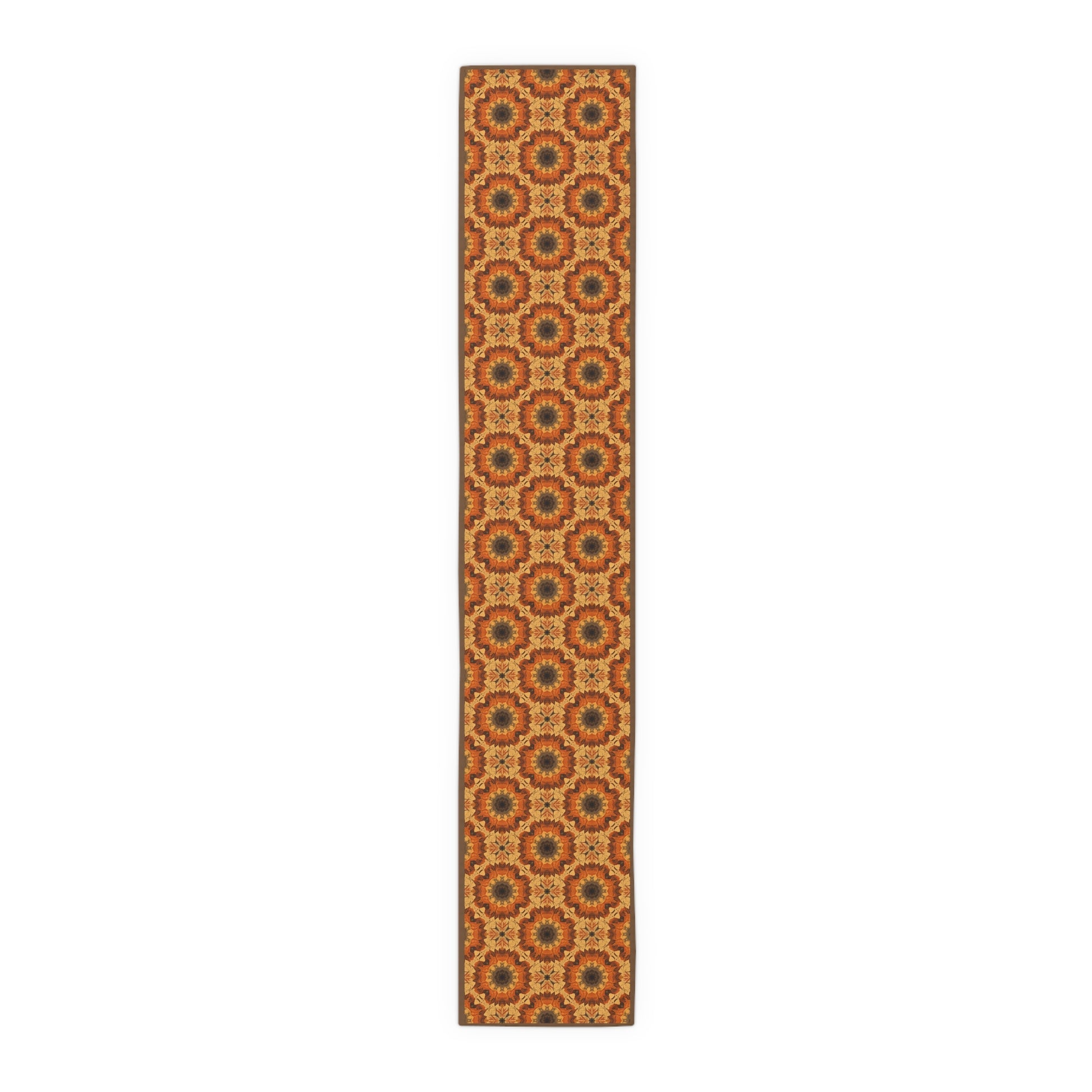 Groovy Fall Flowers Table Runner - 16" x 72" or 16" x 90" Sizes, Fall Table Home Decor, Retro Home Decor, Thanksgiving Table Runner, Fall Table Runner, Cotton Twill or Polyester material choices