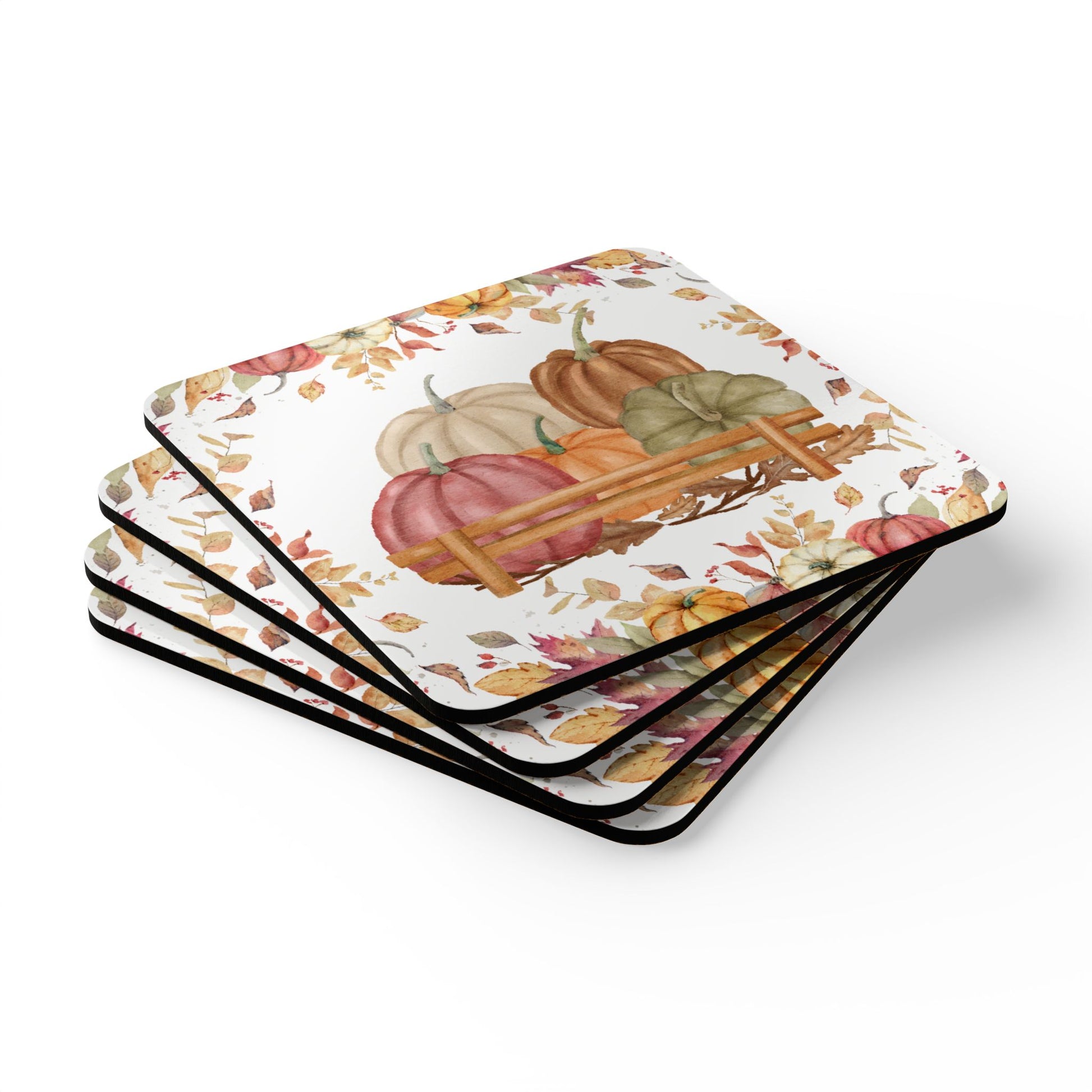 Pumpkins Coasters, Set of 4, Thanksgiving Coasters, Fall Table Decor, Coaster Gift Set, Cork Backed Coasters, Autumn Home Decor, Thanksgiving Drink Coasters