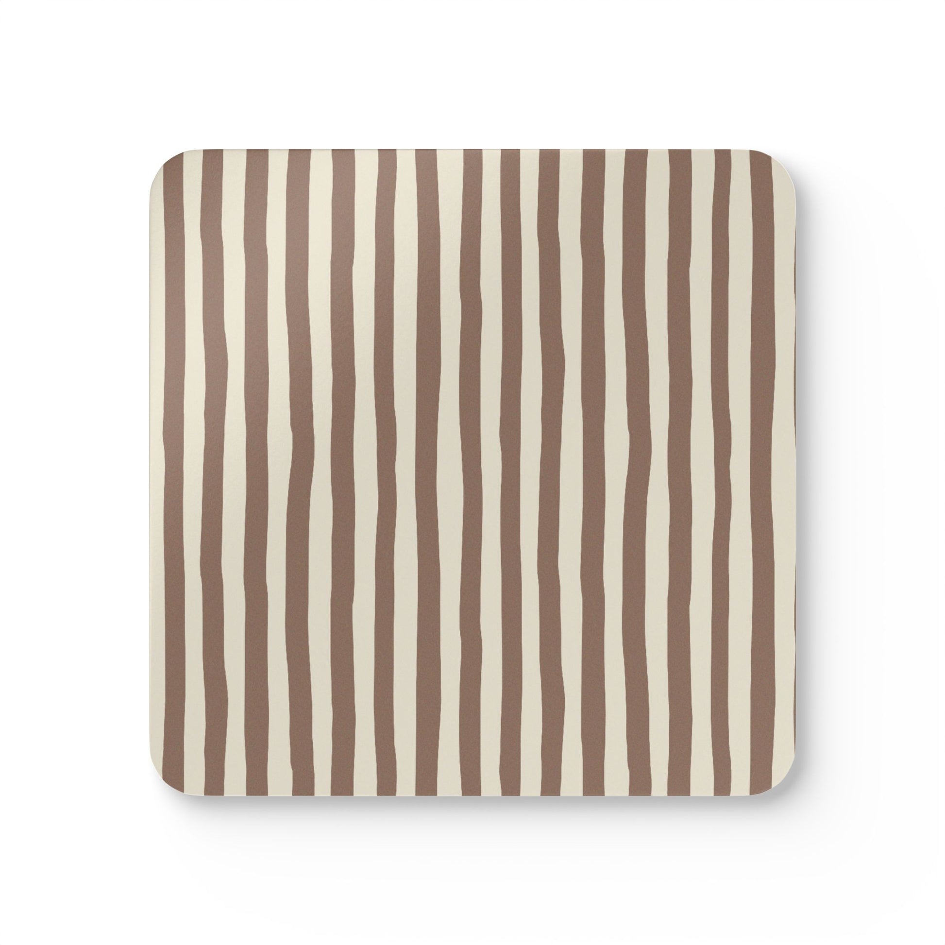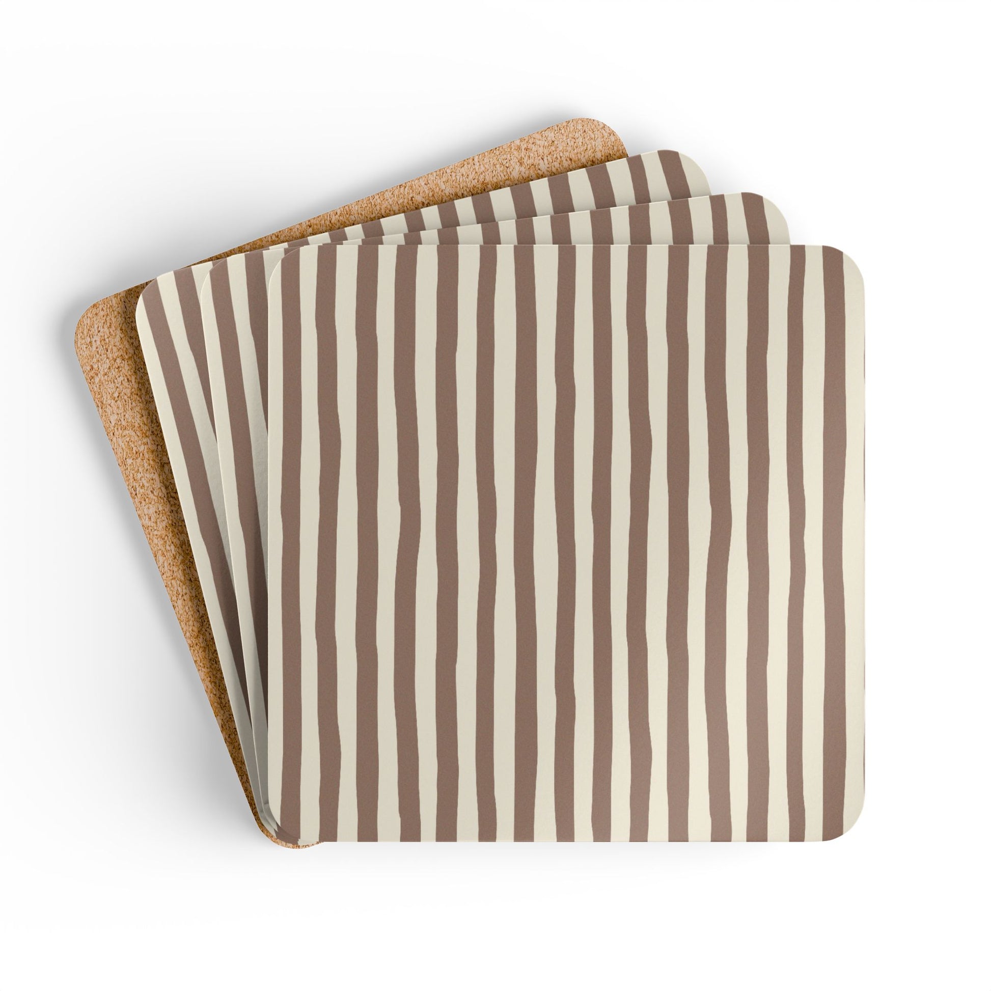 Striped Mocha Square Coasters, Set of 4, Cork Backed Coasters, Farmhouse Home Decor, Fall Autumn Table Decor, Fall Coaster Gift Set, 3.75" x 3.75"