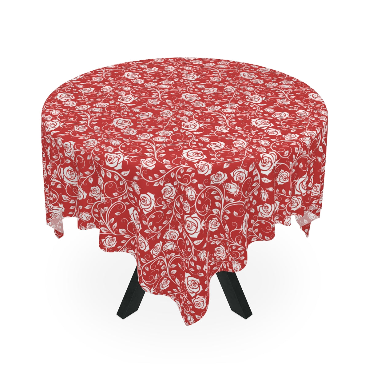 White & Red Roses Tablecloth - 58" × 58" and 58" × 102" Sizes, Winter / Christmas Tablecloth - Party Tablecloth, Valentine's Day Tablecloth, Wedding, Dining Tablecloth, White & Red Tablecloth